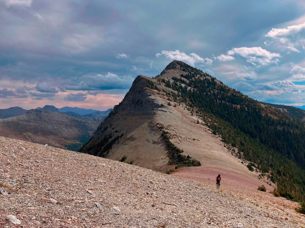 The final section was golden. The trail goes for about 18 kilometers or so, with a roughly 600 meter climb up the South Kootenay Pass. Where the North pass had seemed like a trial by fire, this was a manageable climb into the gently warming air of morning. South Kootenay is, and felt, quite remote. There is no road access to this area. The three of us made our way up through the boulder fields and scree slopes, ascending at the top to alpine terrain, a litter of glacially carved stones and a fantastic view down into Alberta and the headwater areas of the Oldman River.